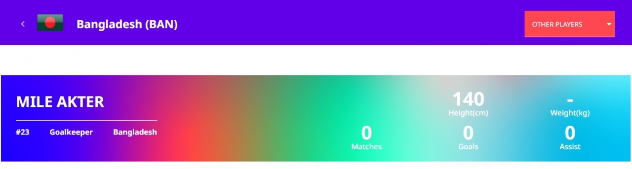 此前据亚足联官网数据显示,孟加拉国女足门将身高仅1米4,但从直播画面显示,亚足联的数据显然出了乌龙,其真实身高与中国女足齐平。